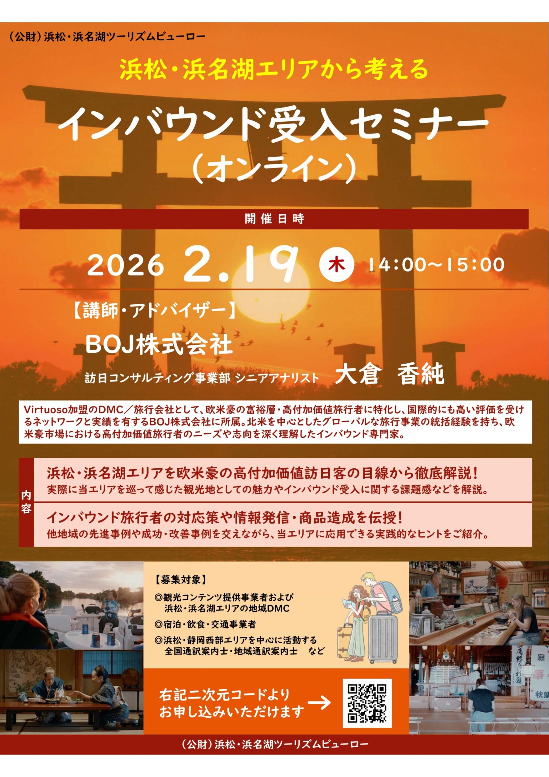 【浜松・浜名湖エリアから考えるインバウンド受入セミナー(オンライン)】